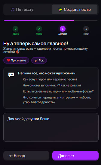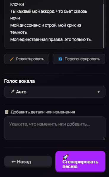4. Получи текст песни, внеси правки и начни генерацию!